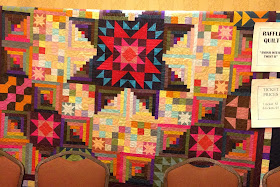 I went to the Colorado Quilt Council (Colorado's state guild) meeting today in beautiful Palisade. It was a nice meeting and it was fun to see a lot of friends that I haven't seen for awhile. There were three raffle quilts on display. Many guilds make quilts to raffle off to make money to help run their guild, or sometimes for a charitable cause. It always seems rather ironic to me, to try and sell the chance to win a quilt to a room full of quilters. Really probably the last thing I need in my house is another quilt! (My husband would probably agree ...) However these are gorgeous quilts and who could pass up the chance to win one of them for $1? You cannot even buy a fat quarter for a dollar. So we support one another's guilds by buying raffle tickets. I really don't know what I would do though, if I ever won one.